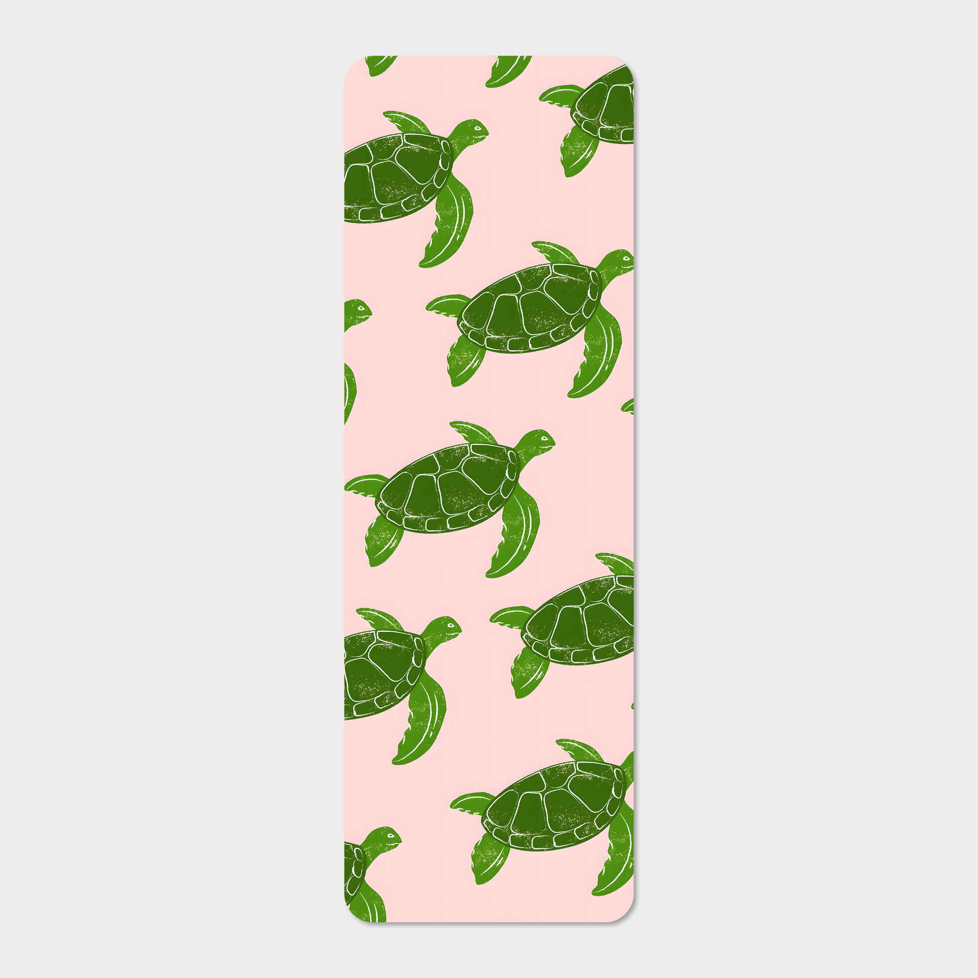 Sköldpaddsresan är ett bokmärke med ett charmigt mönster av gröna havssköldpaddor mot ljusrosa bakgrund. Det fångar lugnet i havets rörelser och påminner om att varje berättelse får ta sin tid. Ett bokmärke för stillsamma läsare och djurälskare med känsla för havets poesi.