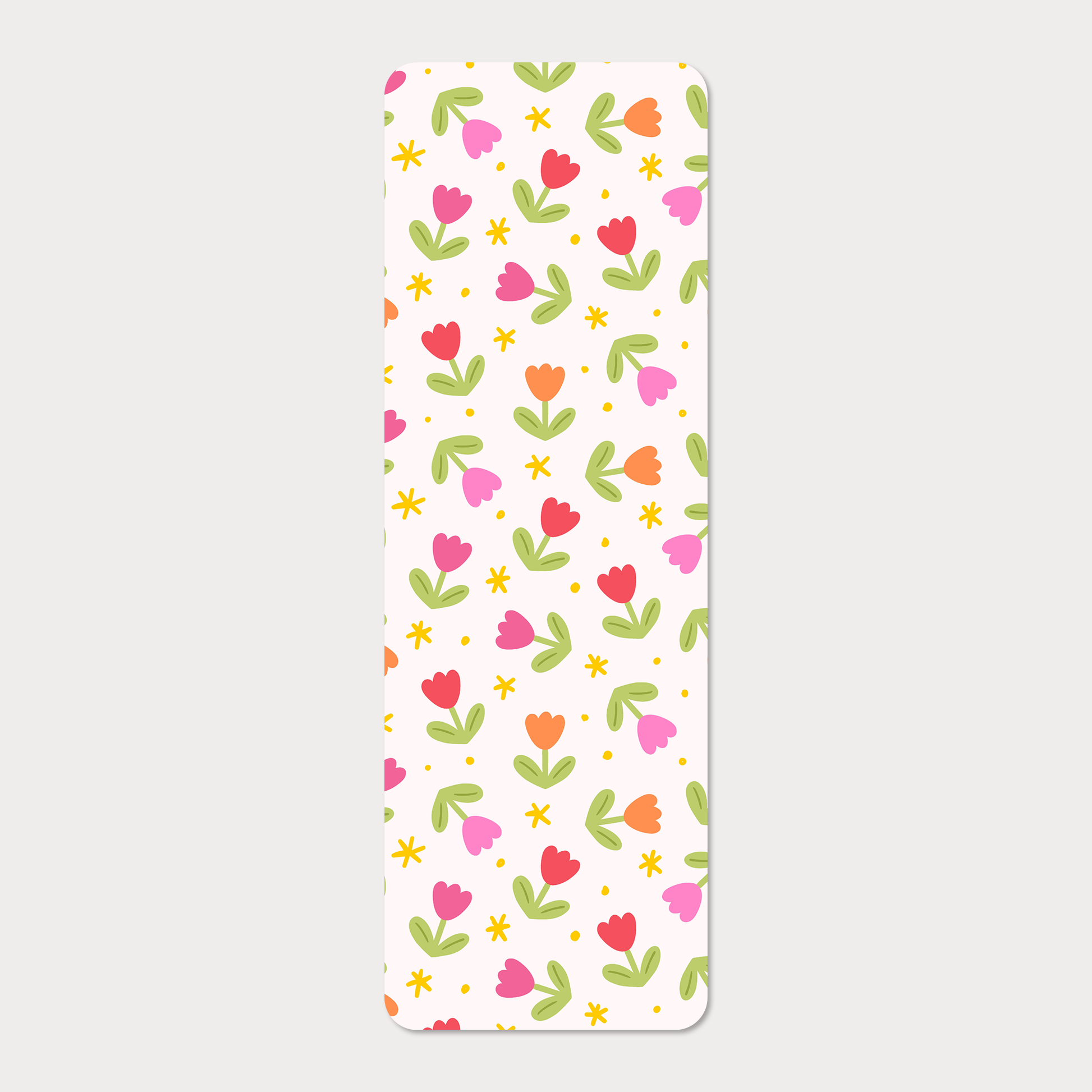 Tulpandröm är ett bokmärke med ett charmigt, handritat mönster av tulpaner i rosa, rött och orange. Det sprider vårkänsla och glädje – perfekt för att liva upp läsningen eller som en liten gåva fylld av färg. Ett bokmärke som bär vårens lätthet i varje blad.