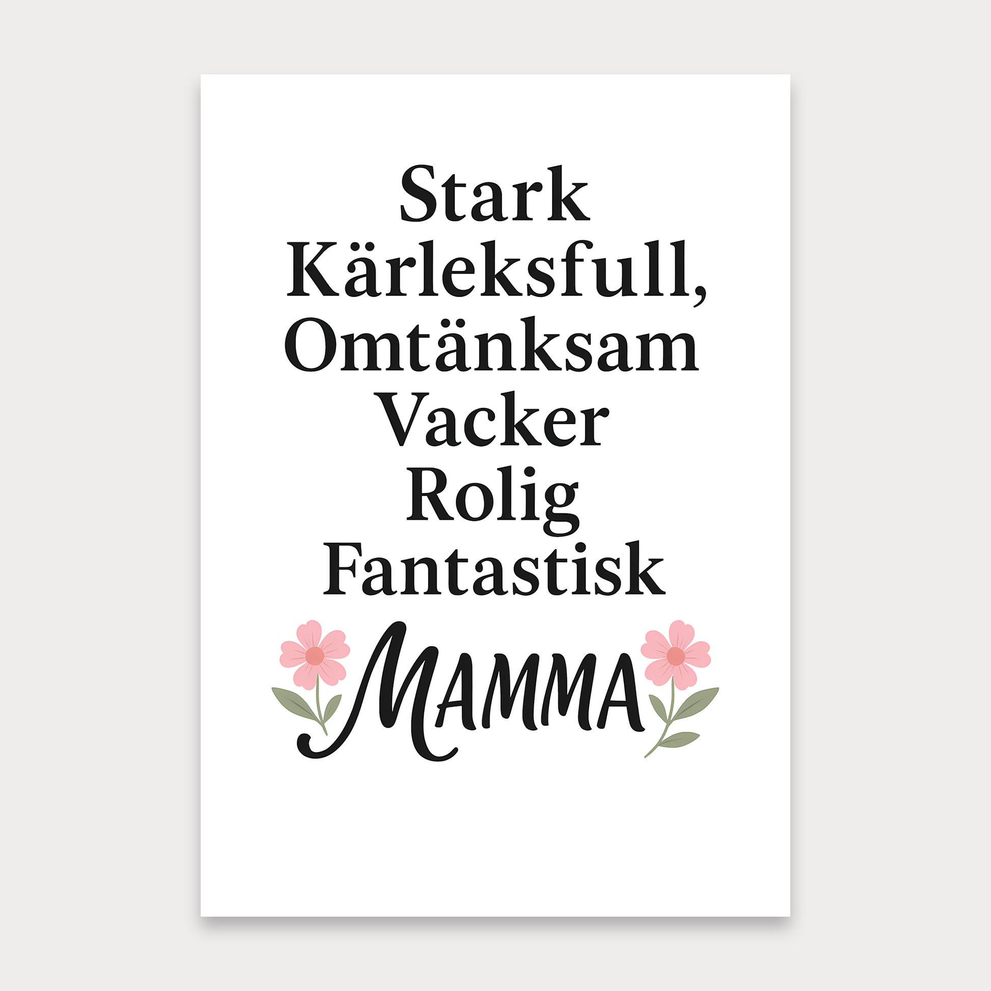 Detta kort hyllar alla de sidor av mamma som gör henne till den otroliga person hon är – stark, rolig, vacker och omtänksam. En stilren design med varma ord som går rakt in i hjärtat.